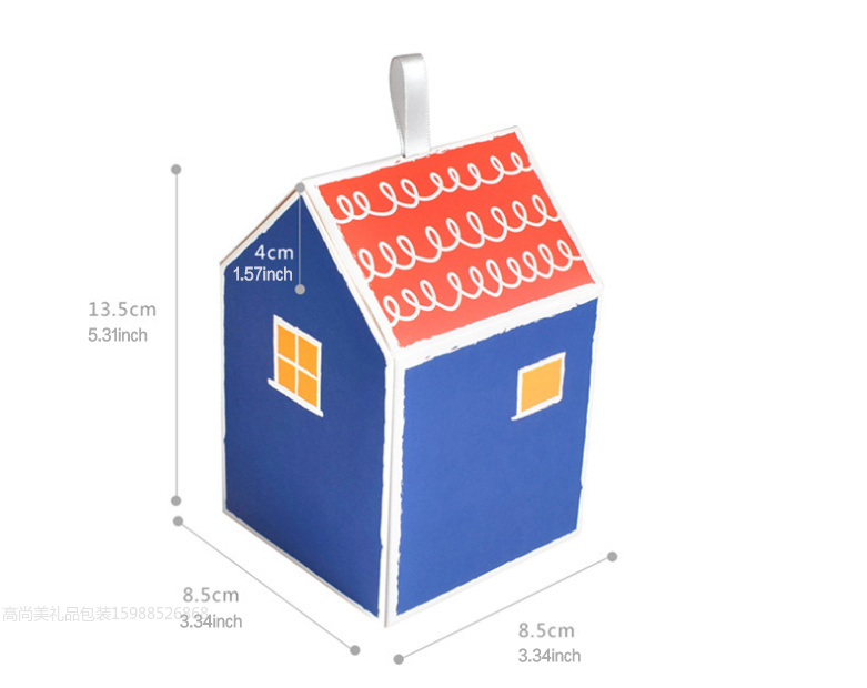 Color Small House Paper Box House Cookies Paper Box Dessert Nougat Candy Candy Box New Year Box Diy Box
